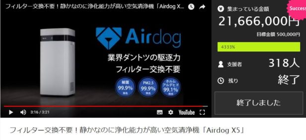 クラウドファンディング*成功例*71 空気清浄機「Airdog X5」